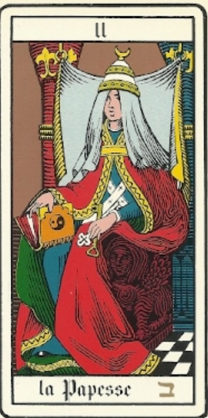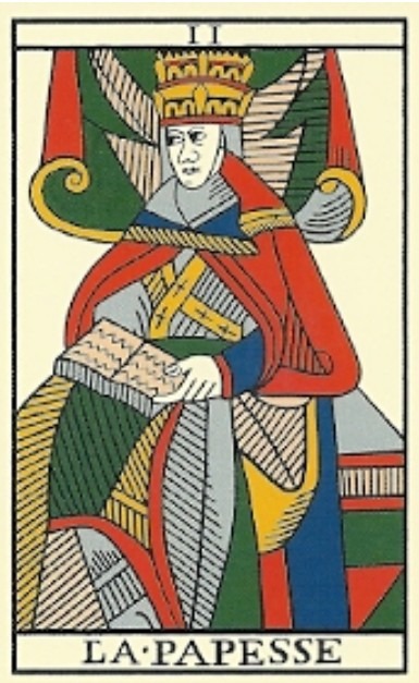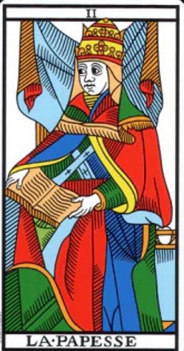 Originally the high priestess was called the papess or female pope. Tarot dates back to the 15th century, a time when the church had control over belief and behaviour. Alternative viewpoints were labelled heresy and drew the attention of the inquisition.