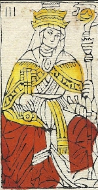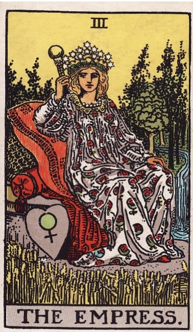 The next card in this series, walk through the tarot, is card number 3, the empress. Another feminine card, the empress represents the natural world of fertility cycles. Of life and death. An earth mother goddess.