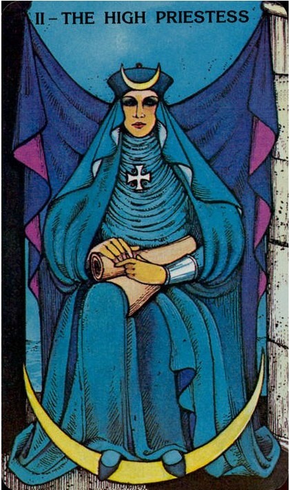The Waite/Coleman Smith high priestess combines these ideas. Waite suggested a connection to the ancient cult of Astarte. The twin black and white pillars emphasised her role as the keeper of secrets.