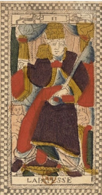 In his book, Le Monde Primitif (or The Primitive World), published in 1781, Antoine Court de Gébelin renamed the papess as the high priestess (La Grande-Prêtresse) and changed card 5, the pope, to the high priest (Le Grand-Prêtre). de Gebelin’s ambition was to show tarot had roots in ancient Egypt although hard evidence is lacking for this claim.